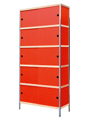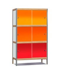 Material: MDF weiss mit 10 Türen in Perspex Frost
